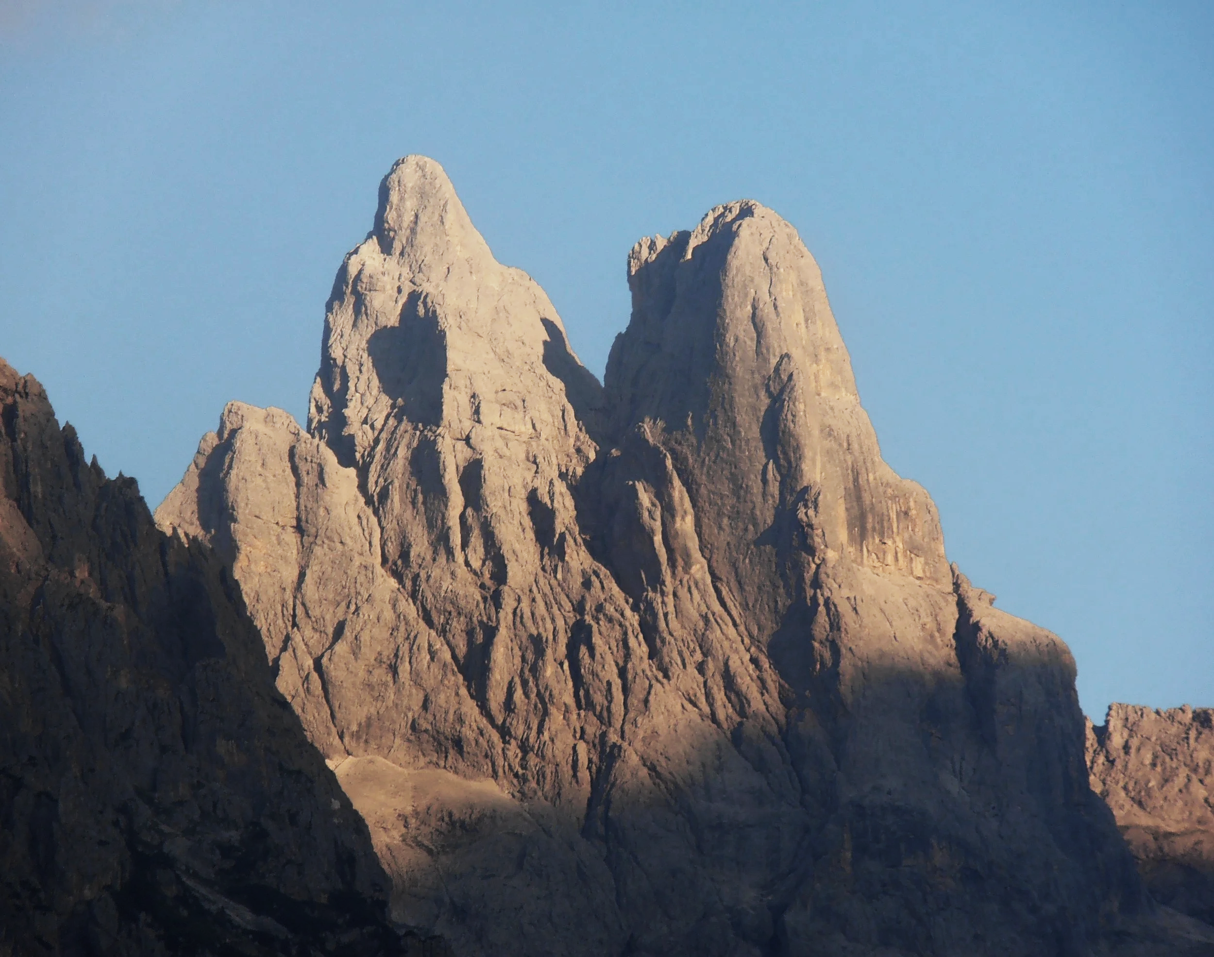 If conditions are favorable, the objective is the Via Ferrata Dino Buzzati on Cimerlo, a difficult and exposed route that requires steady movement on steep terrain and offers a direct introduction to the wild character of these mountains. Depending on the group and mountain conditions, the guide may instead choose the Via Ferrata del Cacciatore on Cima Stanga, technically intermediate, or the Sentiero Depaoli, technically easy to intermediate but still long and physically demanding. Each option follows the same logic of progression into the Pale, combining vertical sections with authentic mountain travel.